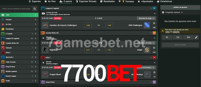 O 7700bet oferece uma grande seleção de opções de apostas em e-sports com probabilidades competitivas